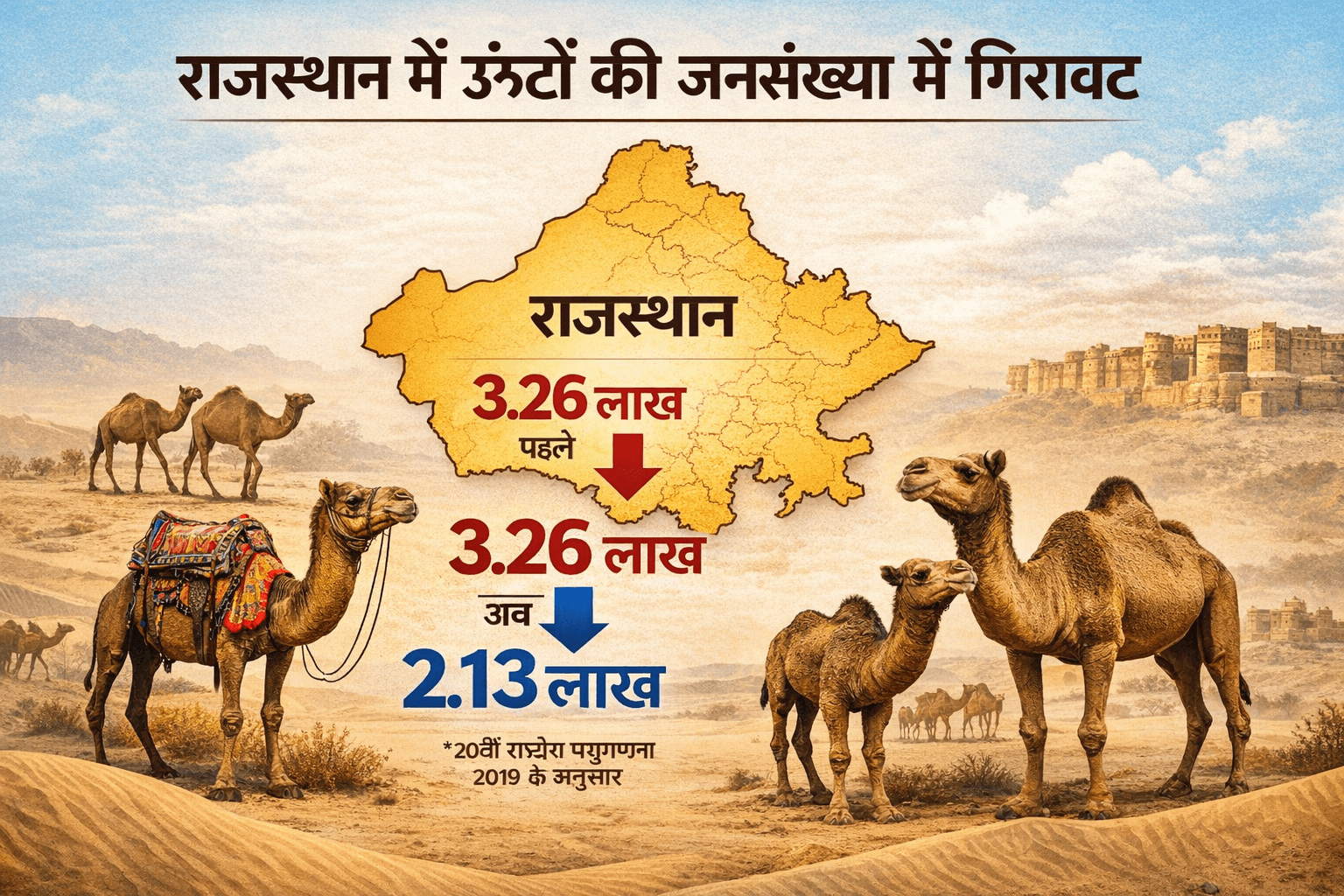 लेकिन आज यही पहचान एक बड़े संकट से गुजर रही है। 20वीं राष्ट्रीय पशुगणना (2019) के अनुसार, पिछले सात वर्षों में राजस्थान में ऊंटों की संख्या में लगभग 34.39 प्रतिशत की गिरावट दर्ज की गई है। जहां पहले ऊंटों की संख्या 3.26 लाख थी, वहीं 2019 में यह घटकर केवल 2.13 लाख रह गई। यह गिरावट न केवल चिंताजनक है, बल्कि आने वाले समय के लिए एक गंभीर चेतावनी भी है।