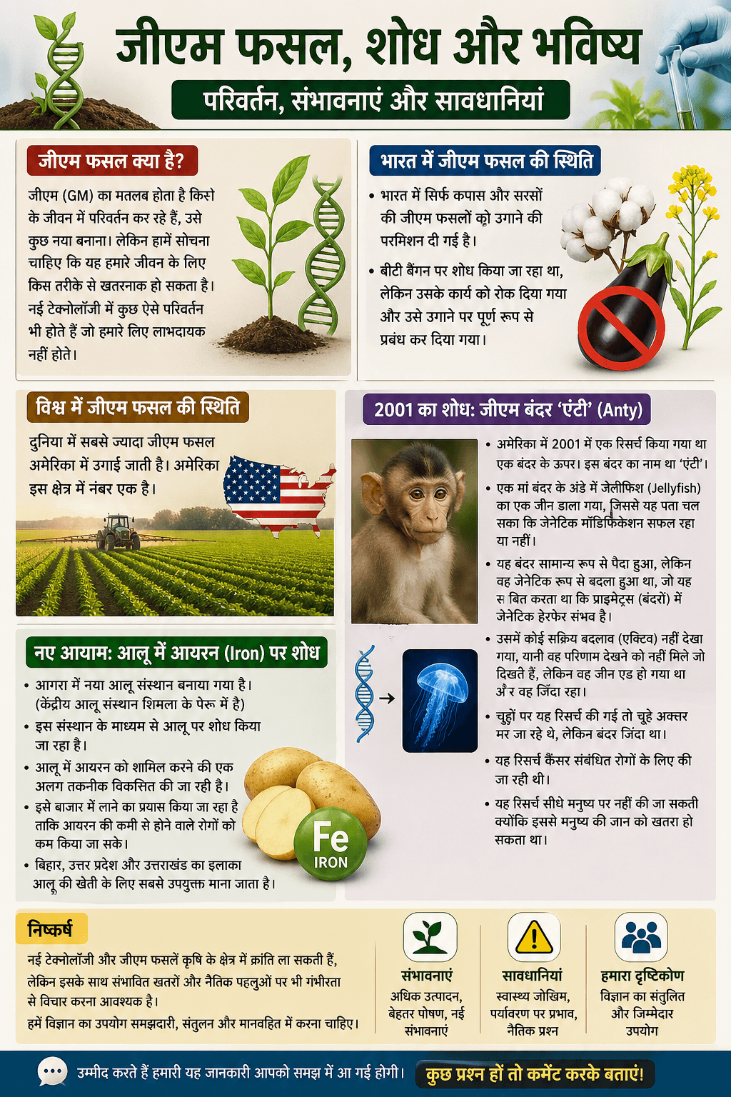 जीएम फसलें और नई तकनीकें कृषि क्षेत्र में क्रांति ला सकती हैं, लेकिन इनके साथ जुड़े जोखिमों को समझना भी जरूरी है। हमें विज्ञान का उपयोग संतुलन और जिम्मेदारी के साथ करना चाहिए।